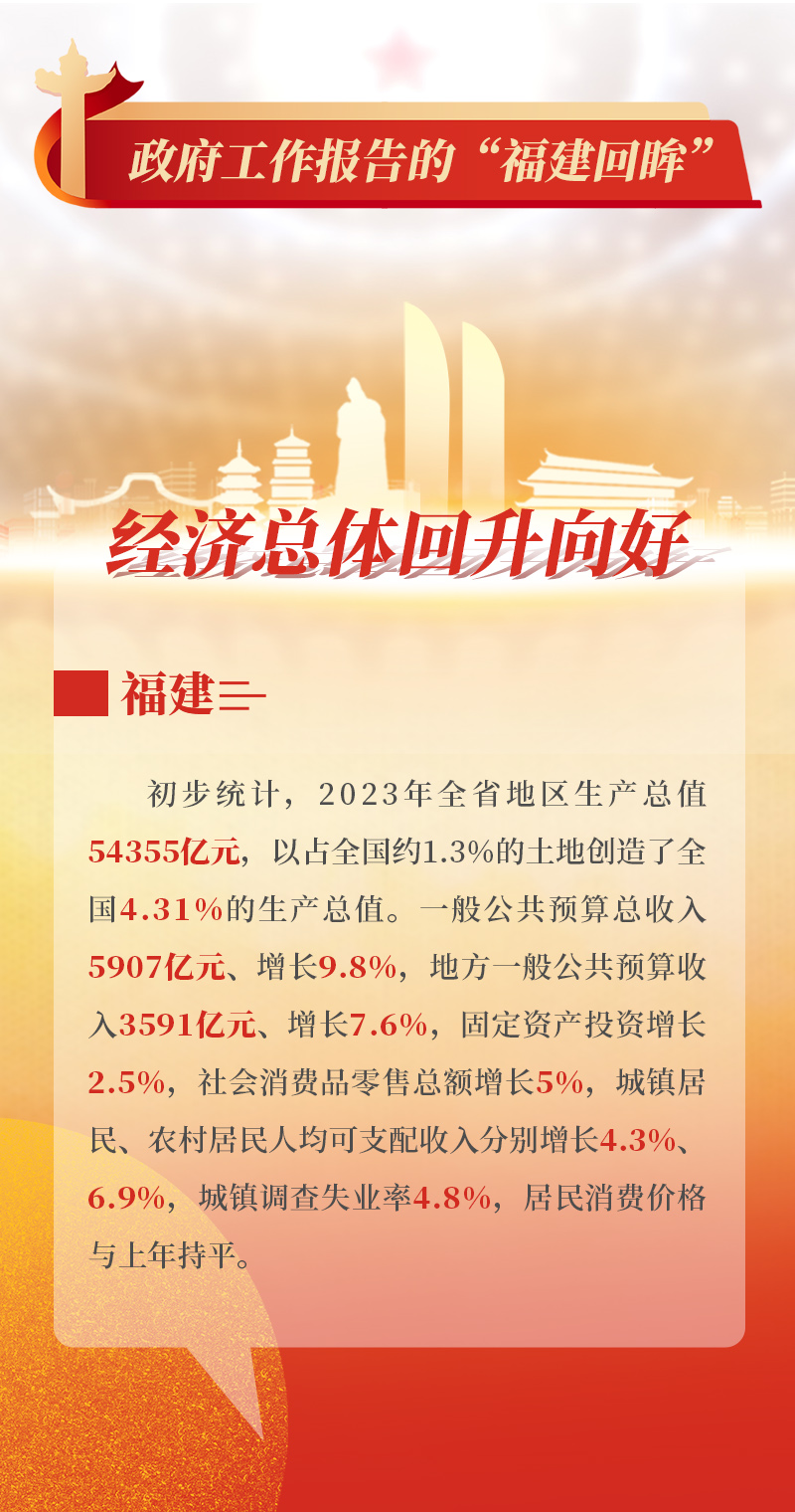 奋力建设新福建,三月的八闽大地处处涌动着万物复苏的春潮。细数过去一年,福建全省地区生产总值54355亿元,居全国第8位,经济持续回升向好,高质量发展迈出坚实步伐。一起来看看政府工作报告的“福建回眸”!