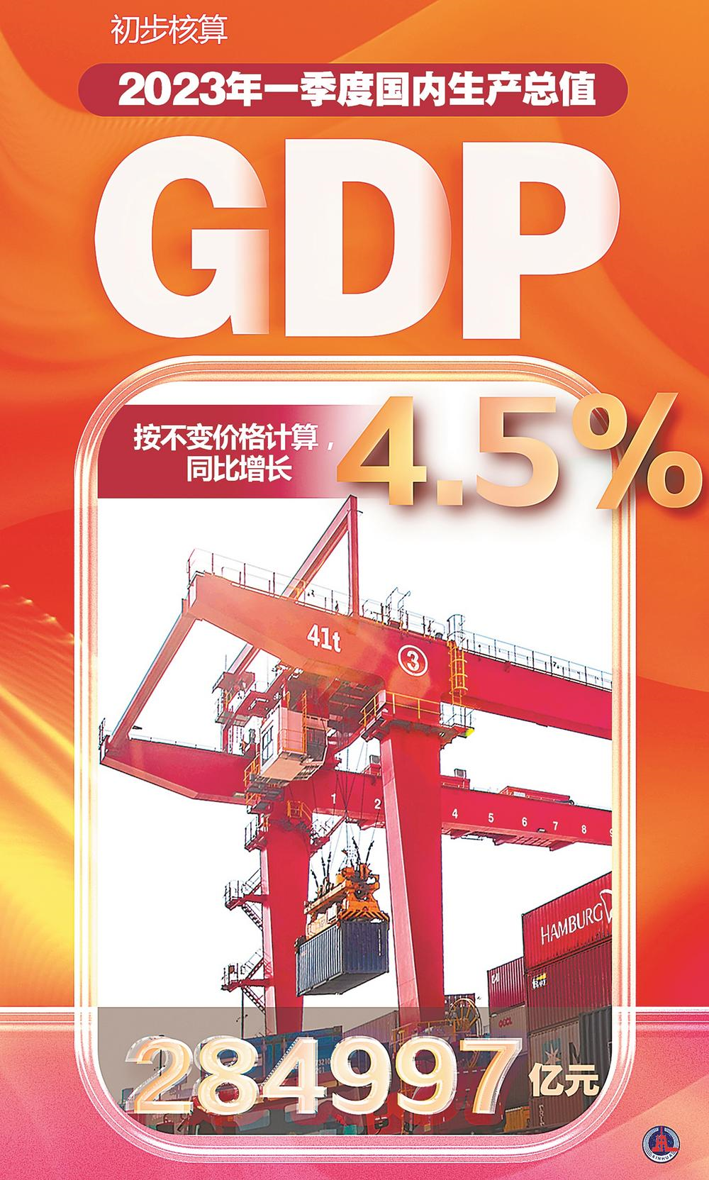 2023年我国经济首季报18日出炉:国内生产总值(GDP)284997亿元,同比增长4.5%。