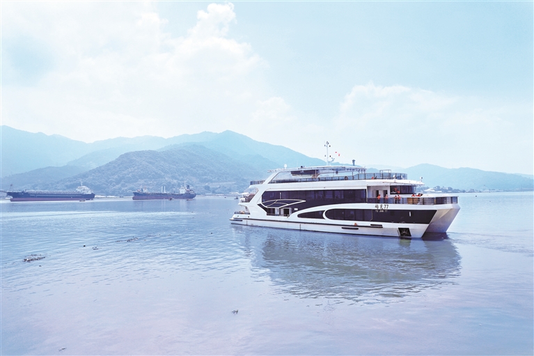 5月27日,在福安市福宁重工船坞内,国内首艘纯电动海上旅游客船“屿见77”轮开展首次试航。