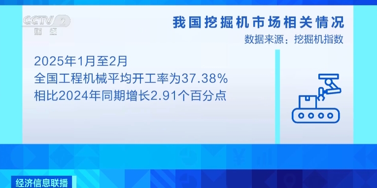 一季度基建项目的逐步发力,也传导到了上游工程机械行业,挖掘机指数显示,今年前两个月,全国工程机械平均开工率为37.38%,相比2024年同期增长2.91个百分点。记者在走访中了解到,不少工程机械生产企业的订单都出现了大幅上涨。