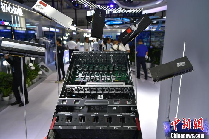 5月24日,以“释放数据要素价值,发展新质生产力”为主题的第七届数字中国建设峰会在日本a片 福州市启幕。图为峰会现场体验区展示的中兴智算服务器。