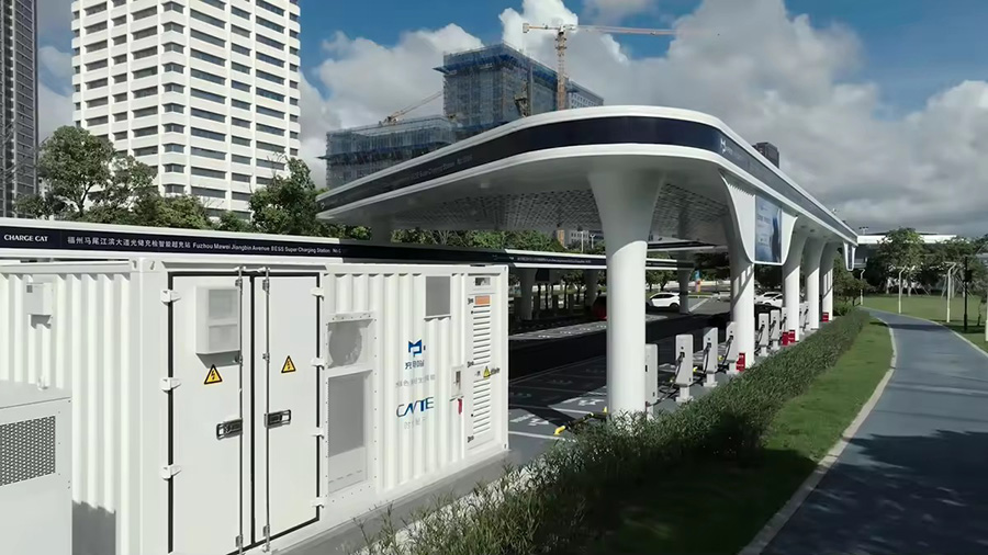 “在新能源车电池请求功率允许的条件下,采用‘光储充检’智能超充桩,最快5分钟就能为车辆补足电量到80%。”徐志峰说。