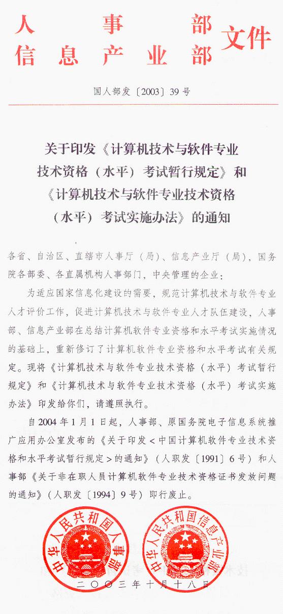 关于印发《计算机技术与软件专业技术资格(水平)考试暂行规定》和《计算机技术与软件专业技术资格(水平)考试实施办法》的通知