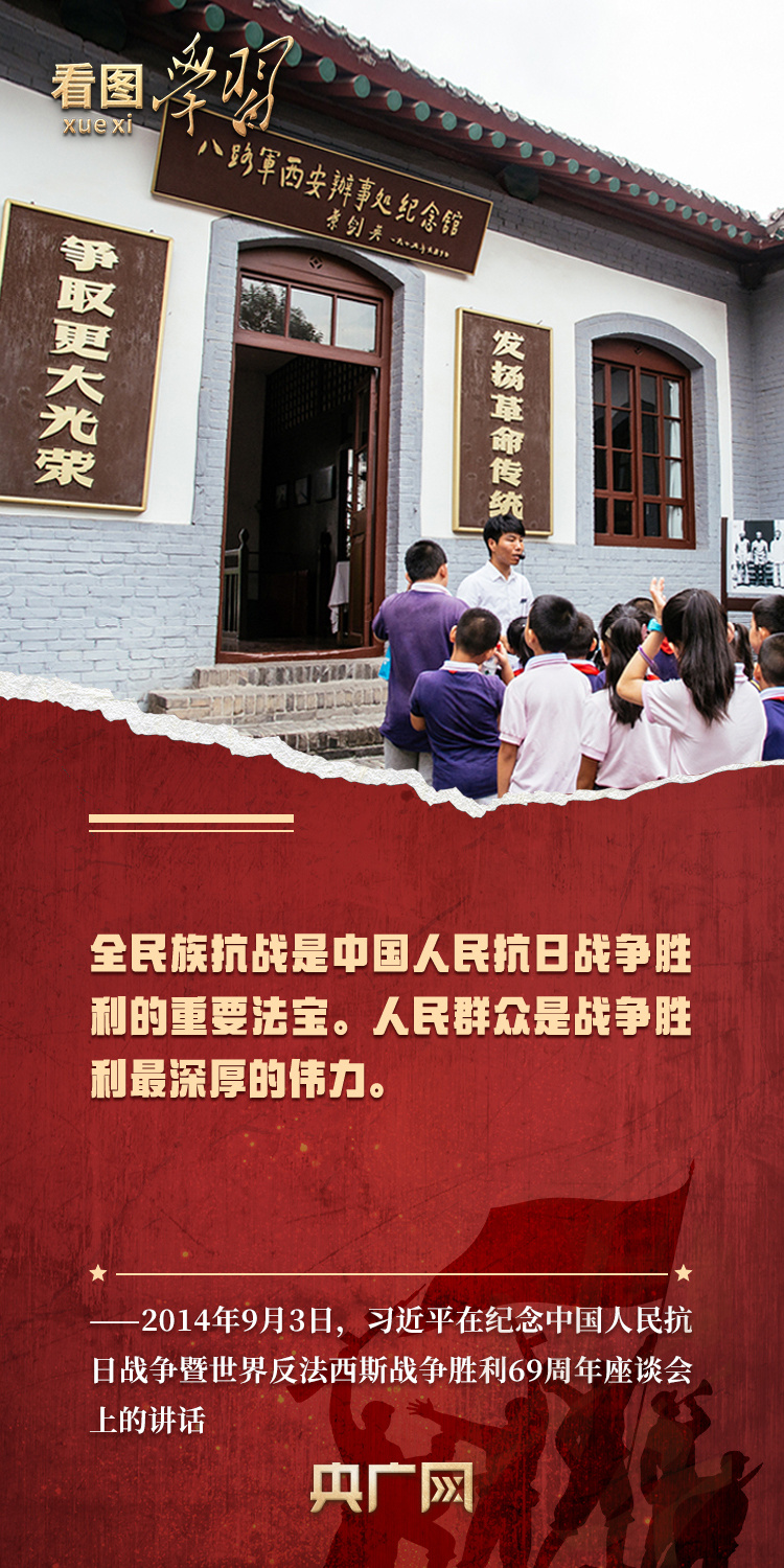 “全民族抗战是中国人民抗日战争胜利的重要法宝。”党的十八大以来,习近平总书记多次在重要场合谈及中国人民抗日战争,阐述全民族抗战的重要历史意义,强调要弘扬伟大抗战精神。